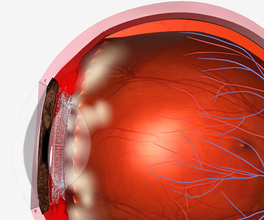 Retina: The innermost layer of the eye responsible for perceiving colors and light, transmitting images to the brain.